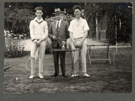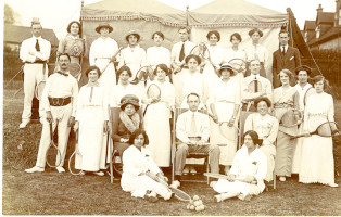 Sepia postcard of tennis players